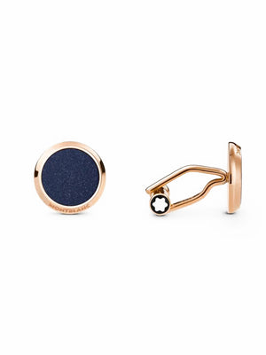 Meisterstück cufflinks celebrate understated style and elegance. Linked to the Montblanc Meisterstück writing instrument, the timeless round shape in stainless steel with rose gold-colored PVD finish and a blue goldstone inlay creates a jewel with a powerful Montblanc signature.