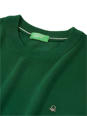 Stay cool and comfortable in this green textured tee. Made from pure cotton, it features a regular fit, short sleeves, a round neck, and a pull-on closure. Perfect for everyday wear.