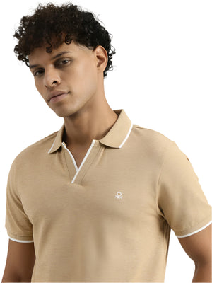 Effortlessly stylish, this beige polo features a classic Johnny collar, short sleeves, and a comfortable cotton blend. The solid pattern and pull-on closure make it a versatile choice for any occasion.