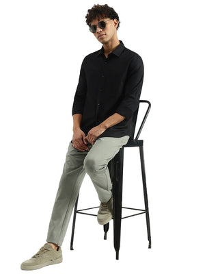 Classic and comfortable, this black full-sleeve shirt is crafted from pure cotton for a soft feel. Featuring a spread collar, button closure, and a solid pattern, it's perfect for any occasion.