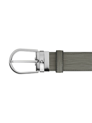 Transform any ensemble into a style statement with this 35mm belt in medium grey leather adorned with a unique bark print motif and a refined horseshoe pin buckle with a shiny palladium finish.