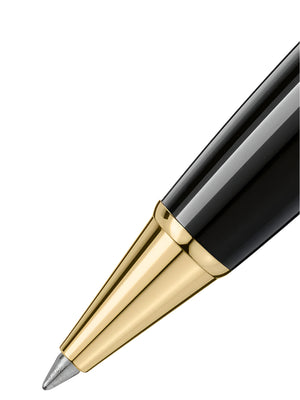 The Meisterstück LeGrand in deep black precious resin with gold-coated details and surmounted by the white star emblem evolves into Montblanc’s design icon.