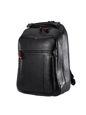 Montblanc Urban Racing Spirit backpack crafted in Full-grain cowhide leather with jacquard lining. This backpack features 2 zip pockets, 3 writing instruments loops, 3 cell phone pockets, 1 front zip pocket and 2 adjustable shoulder straps.
