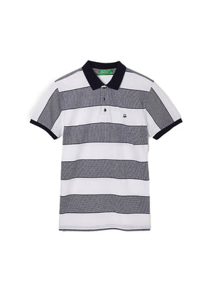 Upgrade your wardrobe with the United Colors of Benetton pique polo shirt for men. Made from 100% cotton, this shirt offers ultimate comfort and breathability. Featuring a blocked stripe pattern, this shirt is perfect for any occasion. It comes with short sleeves and a classic polo neck with a button closure. Add it to your wardrobe today.