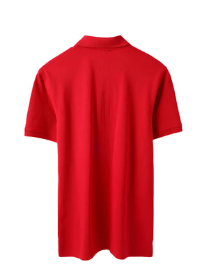 Effortlessly cool in this classic red polo. Crafted from pure cotton for breathable comfort, the relaxed fit offers a modern, laid-back vibe. Short sleeves and a button closure add a touch of sophistication, making it perfect for casual days or smart casual occasions.