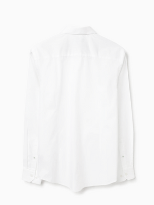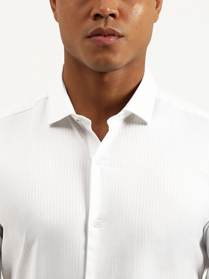 Discover the epitome of classic style with our men's white striped shirt. Tailored in pure cotton for breathable comfort, this slim-fit piece features full sleeves, a sophisticated cutaway collar, and a stylish button hemline. Perfect for any occasion, it's a wardrobe essential for the modern gentleman.
