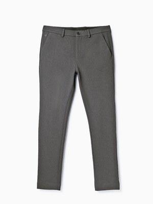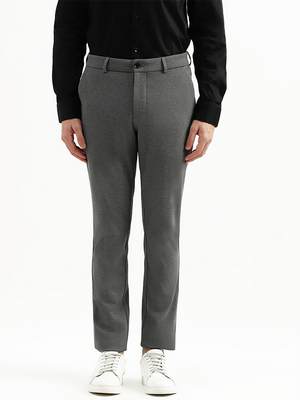Introducing the solid mid-rise slim fit trousers, designed specifically for men who appreciate both style and comfort. Crafted with a premium blend of polyester and viscose fabric, these trousers offer a sleek and modern look. The slim fit design ensures a flattering silhouette, while the knit construction adds an extra level of comfort. Perfect for any occasion, these trousers are a must-have addition to any gentleman's wardrobe.