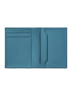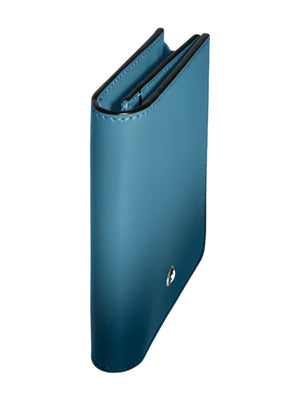 Designed as a life companion, this sophisticated card holder comes with a compartment for business cards as well as slots for four credit cards. The accessory comes in a luxurious smoky blue leather with a manually applied sfumato effect and is tied up with the Montblanc emblem detailing the front.