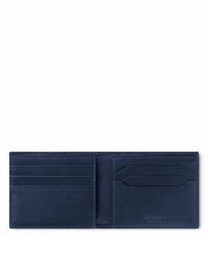 Elegant and atemporal, the Meisterstück wallet is crafted from a luxurious ink blue leather. A practical accessory to honor through the years, it fits up to six credit cards while also offering room for banknotes and personal documents and two additional pockets for smaller belongings.
