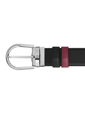 Experience the versatility of this 35mm reversible belt, crafted in smooth black and rich cassis colour leather. It features a new sophisticated horseshoe pin buckle with a shiny palladium finish, seamlessly enhancing both formal and casual ensembles.