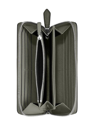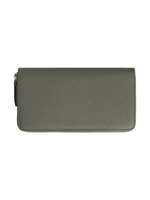 Crafted with a range of functional details, this Saffiano-printed leather wallet in medium grey is a versatile companion. Alongside slots for up to 12 credit cards, it features three compartments for banknotes, a dedicated coin case with a zip, and three additional pockets for other small belongings.