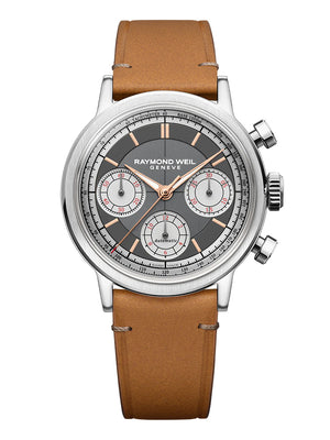 RAYMOND WEIL AUTOMATIC TRI-COMPAX CHRONOGRAPH LEATHER STRAP WATCH