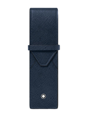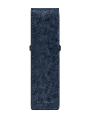 An all-time companion for business professionals and lovers of the written word, this elegant pen pouch comes with space for two writing instruments. Its full-grain ink blue leather silhouette has been fashioned with overlapping shapes, inspired by the form of an envelope.