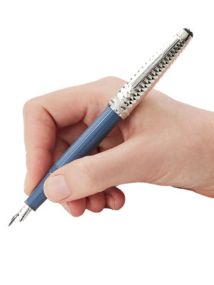 The Meisterstück Glacier Doué Fountain Pen with blue colored precious resin is inspired by the mystical glaciers of the Mont Blanc mountain, standing for our dedication to high quality products, our attitude towards exploration and adventurous spirit. The writing instrument is finished with a hand-crafted 18K solid gold nib, rhodium-coated, and featuring the Mer de Glace 'dragon' lying on top of the Mont Blanc mountain. Its platinum coated metal cap with special engraving represents the geometrical refractions of ice crystals.