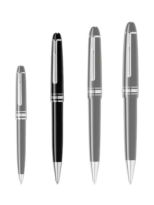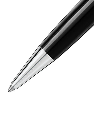 The luxury ballpoint pen Meisterstück Classique evolves into a distinctive design icon. Cap and barrel are crafted in black precious resin inlaid with a white Montblanc emblem. Three platinum-coated rings with embossed Montblanc lettering and a platinum-coated clip with an individual serial number emphasize the timeless design of this luxurious ballpoint pen. To express your personality, Montblanc offers a gratuitous engraving of names or initials by the right side of or on the elegant platinum-coated clip. At a time when individuality is becoming increasingly rare, our Mystery Black, Pacific Blue, Nightfire Red, Fortune Green, Amethyst Purple and Barbados Blue ballpoint pen refills let you show your individual writing style.