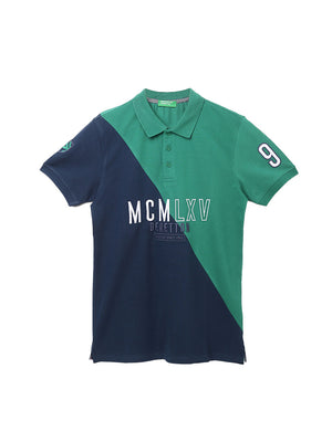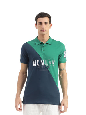 Everyday outfits are bound to become more stylish once you invest in this quirky half-and-half polo shirt. Available in a classic blue-green combo with a white slogan embroidery, this tee comes with functional short sleeves that provide maximum comfort in the summers. The cotton-rich fabric ensures wearability, even in hot weathers.