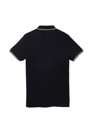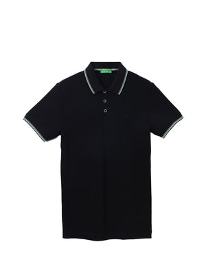 A black polo shirt with fine green edging, this UCB number is a shirt for all seasons. Add a blazer over it or wear it as is, our polos are a timeless addition to any man's wardrobe.