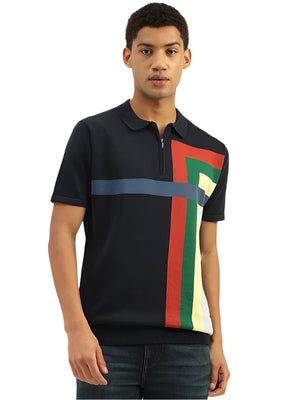 This men's t-shirt is a stylish and comfortable choice for any occasion. It features a blue colorblock pattern with a regular fit short sleeve polo neck and zipper closure. The pure cotton fabric is soft and breathable making it perfect for everyday wear.