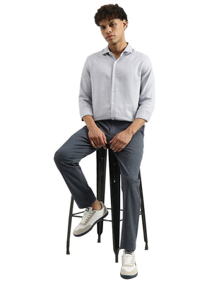 Elevate your style with this classic grey shirt. Featuring a regular printed pattern, full sleeves, semi-cutaway collar, and button closure, this pure cotton shirt offers comfort and sophistication. Perfect for both casual and formal occasions.
