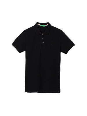 Elevate your casual style with our Regular Fit Polo Neck Solid Pattern T-shirt. Designed with short sleeves and made from comfortable cotton material, this tee boasts a sleek black color that adds a touch of sophistication to your look. A versatile must-have for any modern wardrobe.