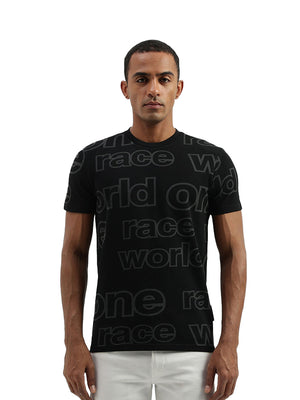 Introducing a must-have addition to your wardrobe - a Regular Fit Round Neck Printed T-Shirt. Crafted with comfort in mind, this half-sleeve tee is made from high-quality cotton material. Its timeless black color adds a touch of sophistication to any outfit. Elevate your style effortlessly with this versatile piece.