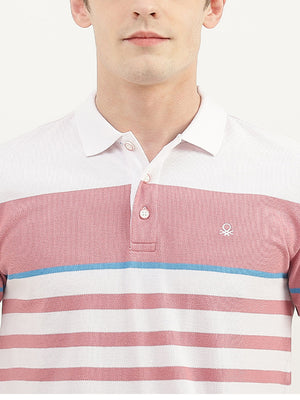 This striped polo shirt carries the brand essence in the form of the embroidered brand logo and will be a dapper addition to your casualwear collection. It is enriched with the supple softness of pure cotton, and its sleek silhouette is enhanced with a polo neck and short sleeves. It combines a modern look with classic styling and can be styled with jeans, trousers, and shorts alike. A pair of sneakers will add to its chic vibe.