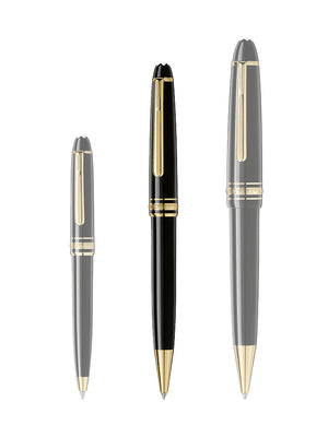 Montblanc Meisterstück Classique Gold-coated collection is a design that writes history. Introduced in 1924, the Meisterstück has become the symbol for high quality luxury writing. The cap and barrel are crafted in black precious resin featuring the iconic white Montblanc emblem inlaid in the cap top.