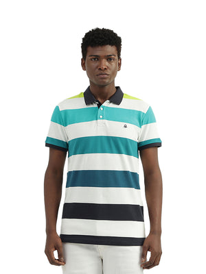Want to incorporate colour but don't want it to be overbearing? We've got you covered with this blue ombre striped polo t-shirt. Made from 100% cotton, this tee styles with any kind of lowers