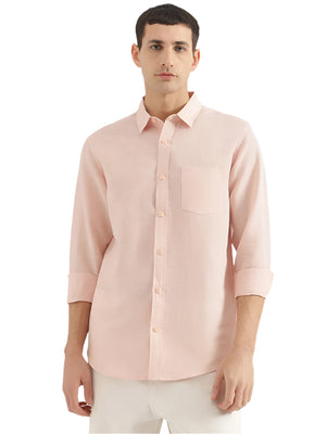 Effortlessly stylish, this pink linen blend shirt boasts a classic spread collar, full sleeves, and a comfortable regular fit. The solid pattern and button closure create a timeless look perfect for any occasion.