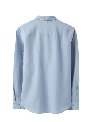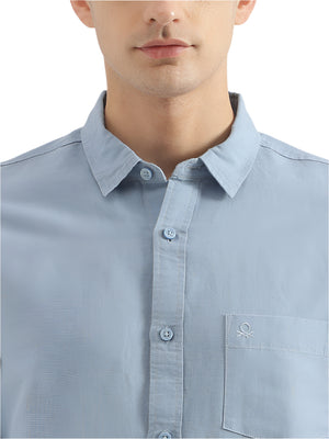 Effortlessly cool, this classic blue linen blend shirt offers breathable comfort and timeless style. The regular fit, spread collar, and full sleeves create a polished look, perfect for any occasion.