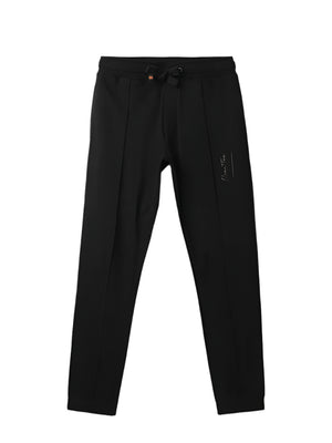 Elevate your casual style with these sleek black track pants. Crafted from pure cotton, they offer comfort and breathability. Featuring a slim fit, mid-rise waist, and drawstring closure for a secure and adjustable fit.